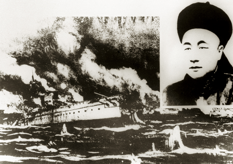 近代以來,面對列強(qiáng)侵略,在愛國主義精神感召下,無數(shù)愛國志士前仆后繼,頑強(qiáng)抗?fàn)帯?894年9月17日,北洋艦隊與日本海軍在黃海大東溝海面展開血戰(zhàn),愛國將領(lǐng)鄧世昌(右上)率“致遠(yuǎn)”艦拼死抗敵,并以受傷之艦撞擊敵主力艦“吉野”號,全艦官兵250余人壯烈殉國。圖為戰(zhàn)斗中的“致遠(yuǎn)”艦。 新華社發(fā)