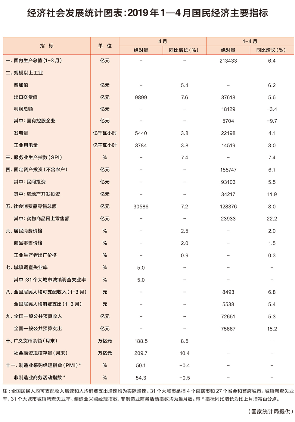 經(jīng)濟(jì)社會發(fā)展統(tǒng)計圖表:2019年1—4月國民經(jīng)濟(jì)主要指標(biāo)