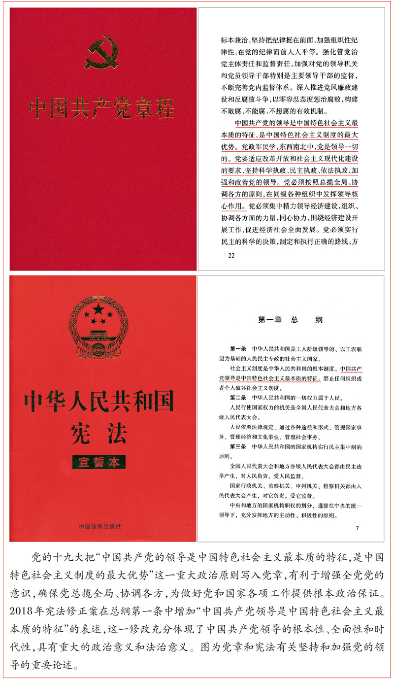——發(fā)揮總攬全局、協調各方的堅強領導核心作用。中國共產黨是中國特色社會主義事業(yè)的領導核心,這是我們黨成功實現領導的重要方式,也是我國社會主義政治制度優(yōu)越性的一個突出特點。古人講的“六合同風,九州共貫”,在當代中國,沒有中國共產黨這樣一個堅強的領導核心是做不到的,也是不可想象的。毛澤東同志指出:“工、農、商、學、兵、政、黨這七個方面,黨是領導一切的?!编囆∑酵痉磸蛷娬{加強黨中央的集中統(tǒng)一領導、維護黨中央的權威。黨的十八大以來,習近平總書記反復強調,黨政軍民學,東西南北中,黨是領導一切的。在國家治理體系的大棋局中,黨中央是坐鎮(zhèn)中軍帳的“帥”,車馬炮各展其長,一盤棋大局分明。新中國70年來,黨的領導核心作用體現到黨治國理政的全部活動之中,貫穿到黨領導經濟建設、政治建設、文化建設、社會建設和生態(tài)文明建設各領域各方面,中國共產黨始終是全國人民戰(zhàn)勝風險挑戰(zhàn)的主心骨、頂梁柱。正因為如此,民族復興的航船才能成功闖過各種急流險灘;我們黨才能帶領人民以壓倒一切困難而不被困難壓倒的氣概,攻堅克難、化危為機,做到“青山繚繞疑無路,忽見千帆隱映來”,得到人民的信賴、擁護和支持。