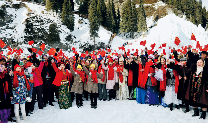中華民族一家親,同心共筑中國夢,這是全體中華兒女的共同心愿,也是全國各族人民的共同目標。實現(xiàn)這個心愿和目標,離不開全國各族人民大團結(jié)的力量。圖為2018年12月31日,千余名群眾齊聚烏魯木齊天山大峽谷,同唱《我和我的祖國》,表達對祖國的摯愛。 新疆維吾爾自治區(qū)黨委宣傳部供圖