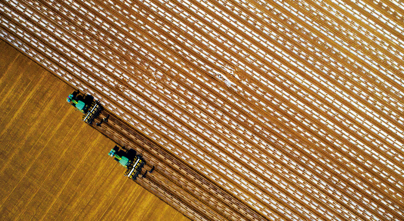今日之新疆,農(nóng)業(yè)綜合生產(chǎn)能力和現(xiàn)代化裝備水平大幅提高,靠天吃飯已經(jīng)成為歷史。圖為2018年4月15日,瑪納斯縣樂土驛鎮(zhèn)三岔口村,綠源農(nóng)業(yè)合作社6700畝棉花陸續(xù)開播,衛(wèi)星導(dǎo)航無人駕駛拖拉機在地里精準作業(yè)。 新疆維吾爾自治區(qū)黨委宣傳部供圖