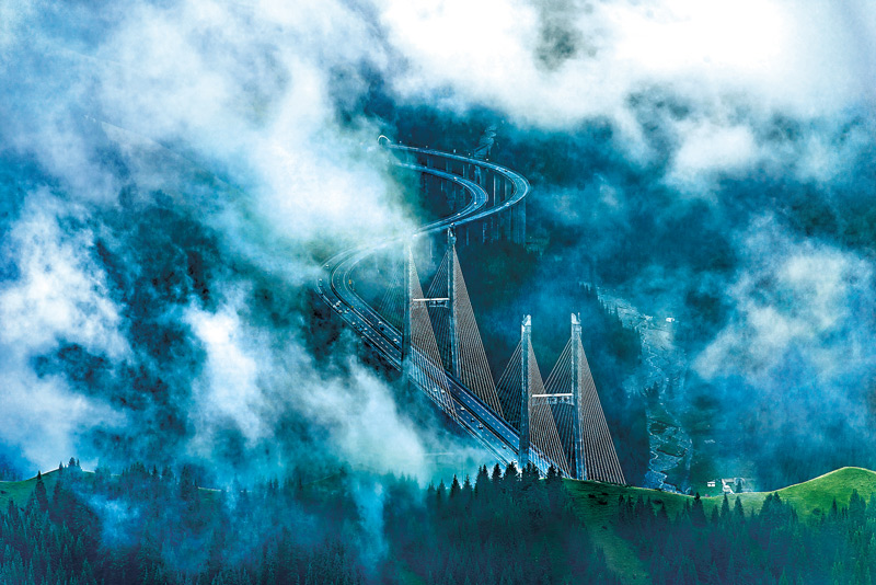 新疆大力實施公路、鐵路、民航網(wǎng)絡(luò)建設(shè),四通八達、陸空縱橫的立體交通網(wǎng)加快形成。截至2019年8月初,新疆高速公路里程超過4800公里,所有地州市都邁入高速公路時代。同時,新疆也進入了高鐵和地鐵時代。圖為2017年5月,云山霧繞下的連霍高速公路新疆果子溝大橋段。 新疆維吾爾自治區(qū)黨委宣傳部供圖