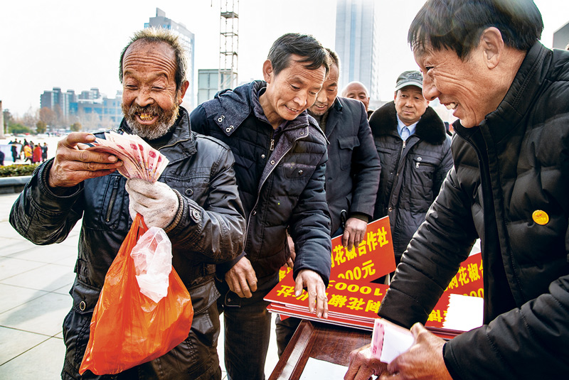 河南省三門(mén)峽市盧氏縣是國(guó)家級(jí)貧困縣、秦巴山區(qū)集中連片特困地區(qū)扶貧開(kāi)發(fā)重點(diǎn)縣。近年來(lái),盧氏縣全力推進(jìn)精準(zhǔn)扶貧、精準(zhǔn)脫貧,2018年有29100人穩(wěn)定脫貧,60個(gè)貧困村達(dá)標(biāo)退出。圖為花椒合作社社員在產(chǎn)業(yè)分紅大會(huì)上領(lǐng)取分紅款。 國(guó)務(wù)院扶貧辦供圖 聶金鋒/攝