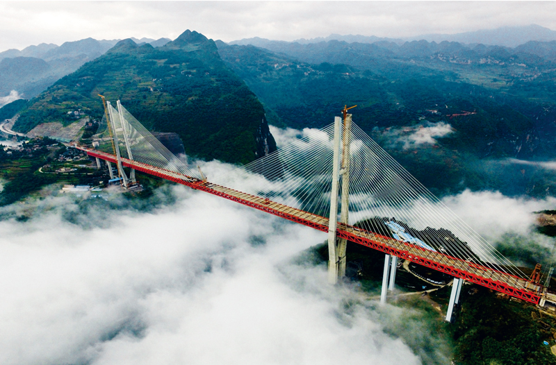 未來的路從腳下延伸。扶貧脫貧事業(yè)是一項長期的歷史性任務(wù),沒有終點,只有不斷開創(chuàng)的新起點。北盤江大橋是中國快速發(fā)展的一個縮影,它的建成極大改善了云貴地區(qū)的交通情況。圖為云端俯瞰的“世界最高橋”北盤江大橋。 吳東俊/攝