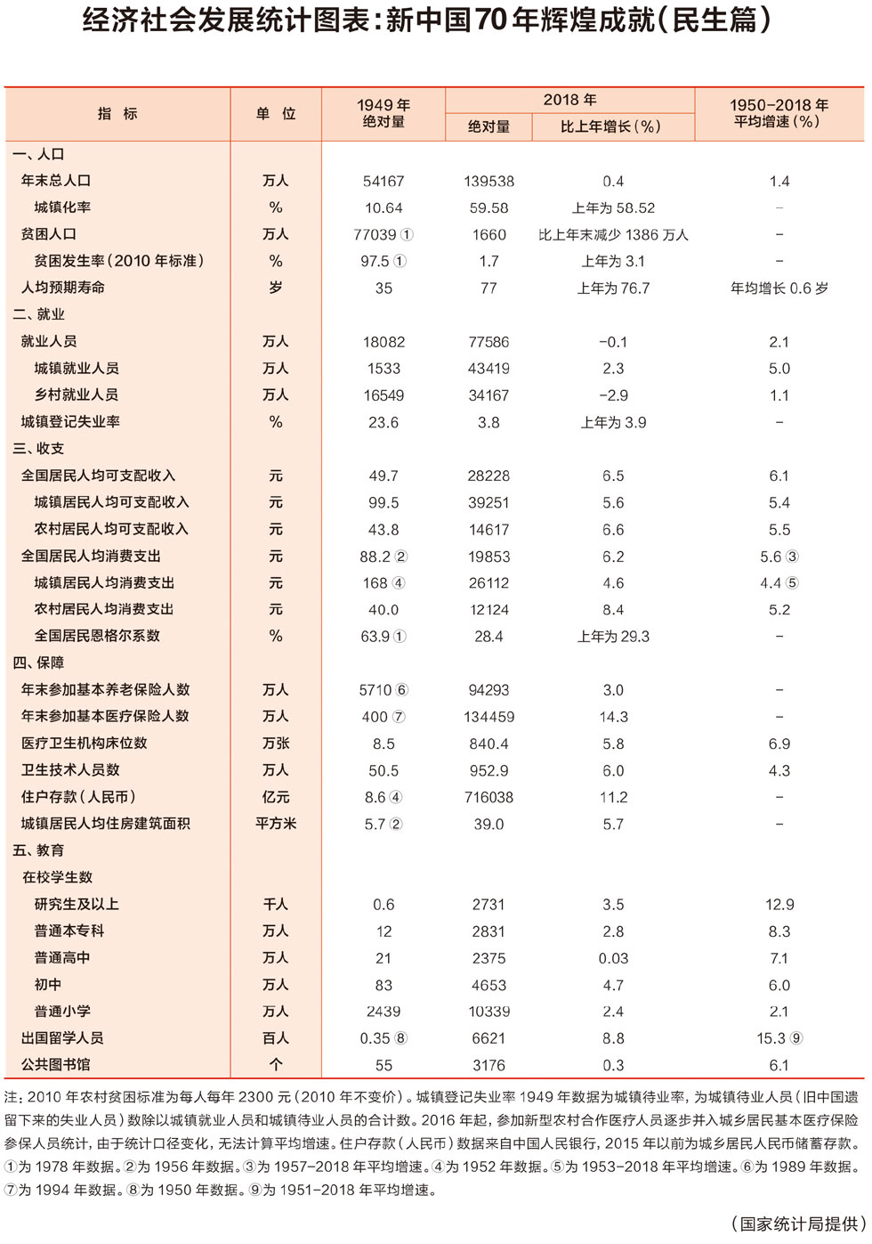 經(jīng)濟(jì)社會(huì)發(fā)展統(tǒng)計(jì)圖表:新中國(guó)70年輝煌成就(民生篇)
