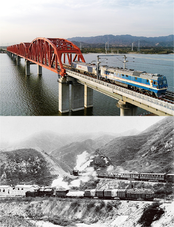 從京張鐵路到京張高鐵,見證了新中國(guó)交通運(yùn)輸事業(yè)發(fā)展的輝煌成就。1909年,中國(guó)人自行設(shè)計(jì)和建造了第一條干線鐵路——京張鐵路,從此打破了外國(guó)人壟斷修建中國(guó)鐵路的局面。2019年底,我國(guó)首條智能高鐵——京張高鐵將正式開通運(yùn)營(yíng)。京張高鐵是第一條首次采用我國(guó)自主研發(fā)的北斗衛(wèi)星導(dǎo)航系統(tǒng)、設(shè)計(jì)時(shí)速為350公里的智能化高速鐵路。上圖為2019年9月19日京張高鐵全線展開接觸網(wǎng)帶電熱滑試驗(yàn)(人民圖片 李忠民/攝)。下圖為京張鐵路青龍橋車站附近的人字軌——這是我國(guó)著名工程專家詹天佑的創(chuàng)造性設(shè)計(jì)(新華社發(fā))。