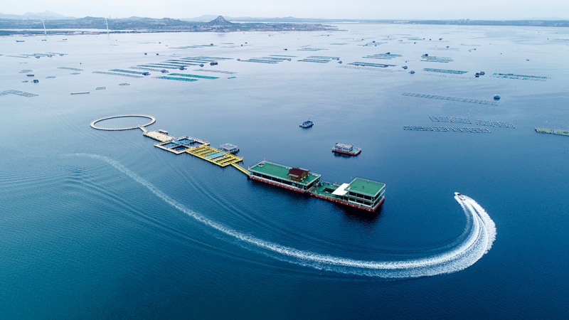 我國經(jīng)濟(jì)發(fā)展韌性強(qiáng)、潛力大、回旋余地廣,長期向好基礎(chǔ)牢、條件好。山東省榮成市作為國家級(jí)海洋經(jīng)濟(jì)發(fā)展示范區(qū)建設(shè)主戰(zhàn)場,積極啟動(dòng)開發(fā)區(qū)體制機(jī)制改革,助推海洋經(jīng)濟(jì)高質(zhì)量發(fā)展。圖為2019年8月27日,榮成市桑溝灣泓泰海洋牧場海上觀光平臺(tái),一艘救生艇正在巡邏。 人民圖片 楊志禮/攝