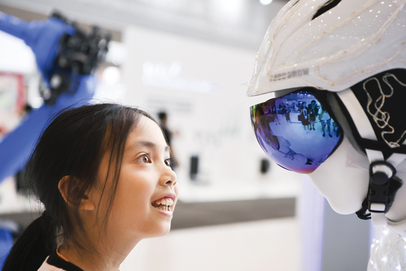 隨著我國創(chuàng)新驅(qū)動(dòng)發(fā)展戰(zhàn)略深入實(shí)施,新科技成果將不斷涌現(xiàn),經(jīng)濟(jì)發(fā)展新動(dòng)能更加強(qiáng)勁。圖為一名小朋友在2019年中國國際智能產(chǎn)業(yè)博覽會(huì)主會(huì)場重慶國際博覽中心參觀。 新華社記者 王全超/攝