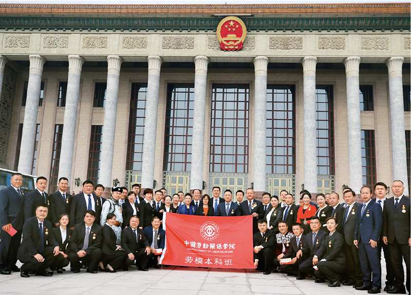 2018年“五一”國際勞動節(jié)前,中國勞動關(guān)系學(xué)院勞模本科班全體學(xué)員給習(xí)近平總書記寫信,匯報學(xué)習(xí)習(xí)近平新時代中國特色社會主義思想的體會,表達了當(dāng)好主人翁、建功新時代的決心。4月30日,習(xí)近平總書記給學(xué)員們回信,勉勵他們珍惜榮譽、努力學(xué)習(xí),繼續(xù)拼搏、再創(chuàng)佳績。圖為2019年4月23日,參加“五一”國際勞動節(jié)暨全國五一勞動獎和全國工人先鋒號表彰大會的中國勞動關(guān)系學(xué)院勞模本科班學(xué)員代表合影。 工人日報記者 楊登峰/攝