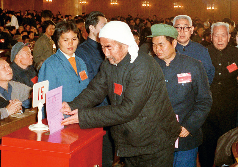 我國現(xiàn)行憲法于1982年12月4日由第五屆全國人大第五次會議通過并公布施行。根據(jù)改革開放和社會主義現(xiàn)代化建設的實踐和發(fā)展,全國人大于1988年、1993年、1999年、2004年、2018年先后5次作出必要的、也是十分重要的修正。圖為出席第五屆全國人民代表大會第五次會議的代表投票表決《中華人民共和國憲法》。 新華社發(fā)(資料照片)
