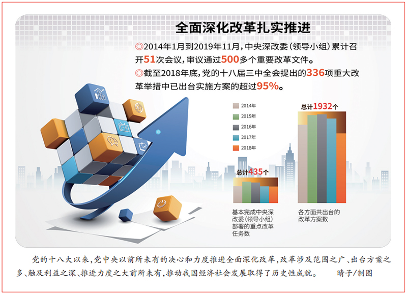 堅(jiān)持改革創(chuàng)新、與時(shí)俱進(jìn),善于自我完善、自我發(fā)展,使社會(huì)始終充滿生機(jī)活力,是我國(guó)國(guó)家制度和國(guó)家治理體系的一個(gè)顯著優(yōu)勢(shì)。黨的十八大以來(lái),中國(guó)改革風(fēng)起云涌,各項(xiàng)創(chuàng)新層出不窮。中央全面深化改革委員會(huì)(領(lǐng)導(dǎo)小組)已審議通過(guò)500多個(gè)重要改革文件,各地各部門也推出數(shù)千項(xiàng)改革舉措,有力調(diào)動(dòng)了各方面積極性,推動(dòng)我國(guó)經(jīng)濟(jì)社會(huì)發(fā)展取得了歷史性成就。