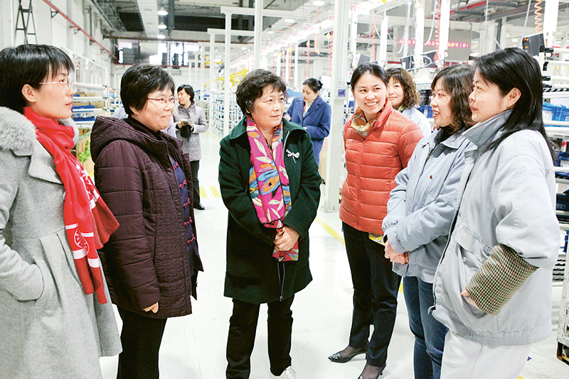 全總把大興調(diào)研之風(fēng)、密切與職工群眾的血肉聯(lián)系作為正風(fēng)肅紀(jì)的重要切入點(diǎn),樹(shù)立起以職工為中心的鮮明導(dǎo)向。圖為2018年3月19日,全總女職工部黨支部赴上海柴油機(jī)股份有限公司調(diào)研,在生產(chǎn)車(chē)間與女職工面對(duì)面交流,了解她們的意見(jiàn)建議。 全總機(jī)關(guān)黨委供圖