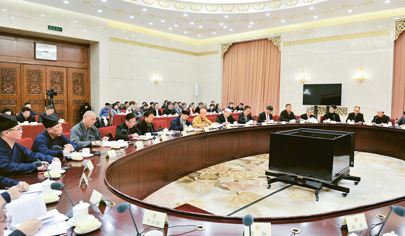 主題協(xié)商座談會(huì)是全國(guó)政協(xié)民族和宗教委員會(huì)組織的協(xié)商平臺(tái),每年選取一個(gè)主題,民族界和宗教界委員圍繞主題開(kāi)展調(diào)研和座談。圖為2019年11月26日,全國(guó)政協(xié)民族和宗教委員會(huì)召開(kāi)宗教界主題協(xié)商座談會(huì),圍繞“以社會(huì)主義核心價(jià)值觀引領(lǐng)各宗教對(duì)教義教規(guī)作出符合時(shí)代進(jìn)步要求的闡釋”座談交流。 人民政協(xié)報(bào) 姜貴東/攝