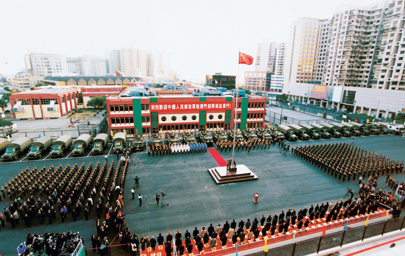 遵照中央軍委命令,駐澳門部隊(duì)于1999年12月20日12時(shí)整,準(zhǔn)時(shí)進(jìn)入澳門,開始履行防務(wù)職責(zé)。圖為駐軍隆重舉行進(jìn)駐后首次升國(guó)旗儀式。 南部戰(zhàn)區(qū)供圖