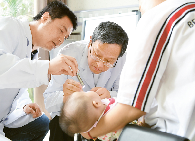 海南充分利用環(huán)境優(yōu)勢(shì)和政策優(yōu)勢(shì)吸引集聚了大批“候鳥(niǎo)”人才,助推海南自貿(mào)區(qū)、自貿(mào)港建設(shè),僅博鰲超級(jí)醫(yī)院“1+X”共享平臺(tái)就柔性引進(jìn)了17個(gè)院士專家團(tuán)隊(duì)。圖為2018年7月17日,博鰲超級(jí)醫(yī)院舉行口腔頜面外科大型義診活動(dòng),張志愿院士(中)正在為患者看病。 新華社記者 楊冠宇/攝