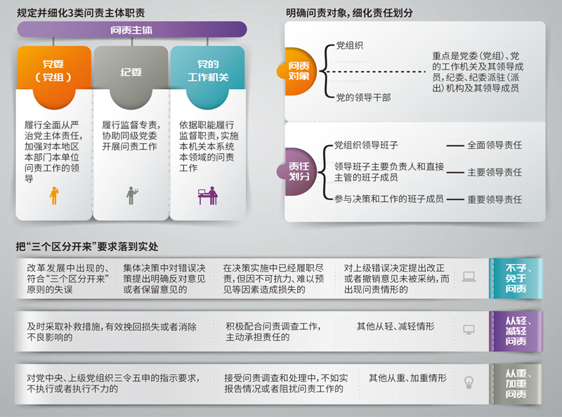 圖為2019年新修訂的《中國共產(chǎn)黨問責(zé)條例》部分內(nèi)容圖解。 張晴/制圖