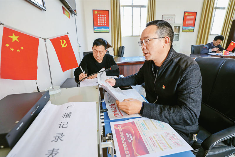 新修訂的《中國共產(chǎn)黨問責(zé)條例》頒布后,云南省陸良縣紀(jì)委監(jiān)委切實(shí)抓好《條例》的學(xué)習(xí)宣傳和貫徹落實(shí),充分利用“村村通”廣播、“微黨課”等載體,及時(shí)向農(nóng)村黨員干部宣講《條例》精神。圖為2019年11月22日,該縣芳華鎮(zhèn)紀(jì)委干部通過“村村通”廣播開展《條例》宣講。 王勇/攝