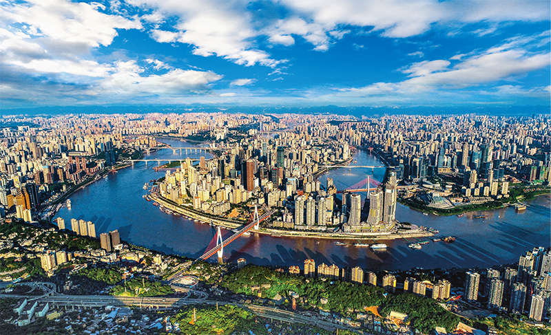 重慶作為我國(guó)中西部地區(qū)的直轄市,正緊緊圍繞把習(xí)近平總書記殷殷囑托全面落實(shí)在重慶大地上這條主線,貫徹落實(shí)中央關(guān)于推動(dòng)成渝地區(qū)雙城經(jīng)濟(jì)圈建設(shè)的重大決策部署,在主動(dòng)服務(wù)全國(guó)大局中推動(dòng)自身發(fā)展,努力做到既為一域爭(zhēng)光,又為全局添彩。圖為重慶“兩江四岸”核心區(qū)鳥瞰。 重慶日?qǐng)?bào)供圖