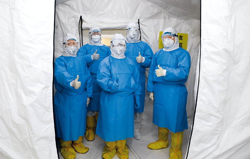 圖為在武漢抗疫一線的軍隊(duì)醫(yī)學(xué)專家組陳薇院士與檢測組一起為武漢加油 軍事醫(yī)學(xué)研究院供圖