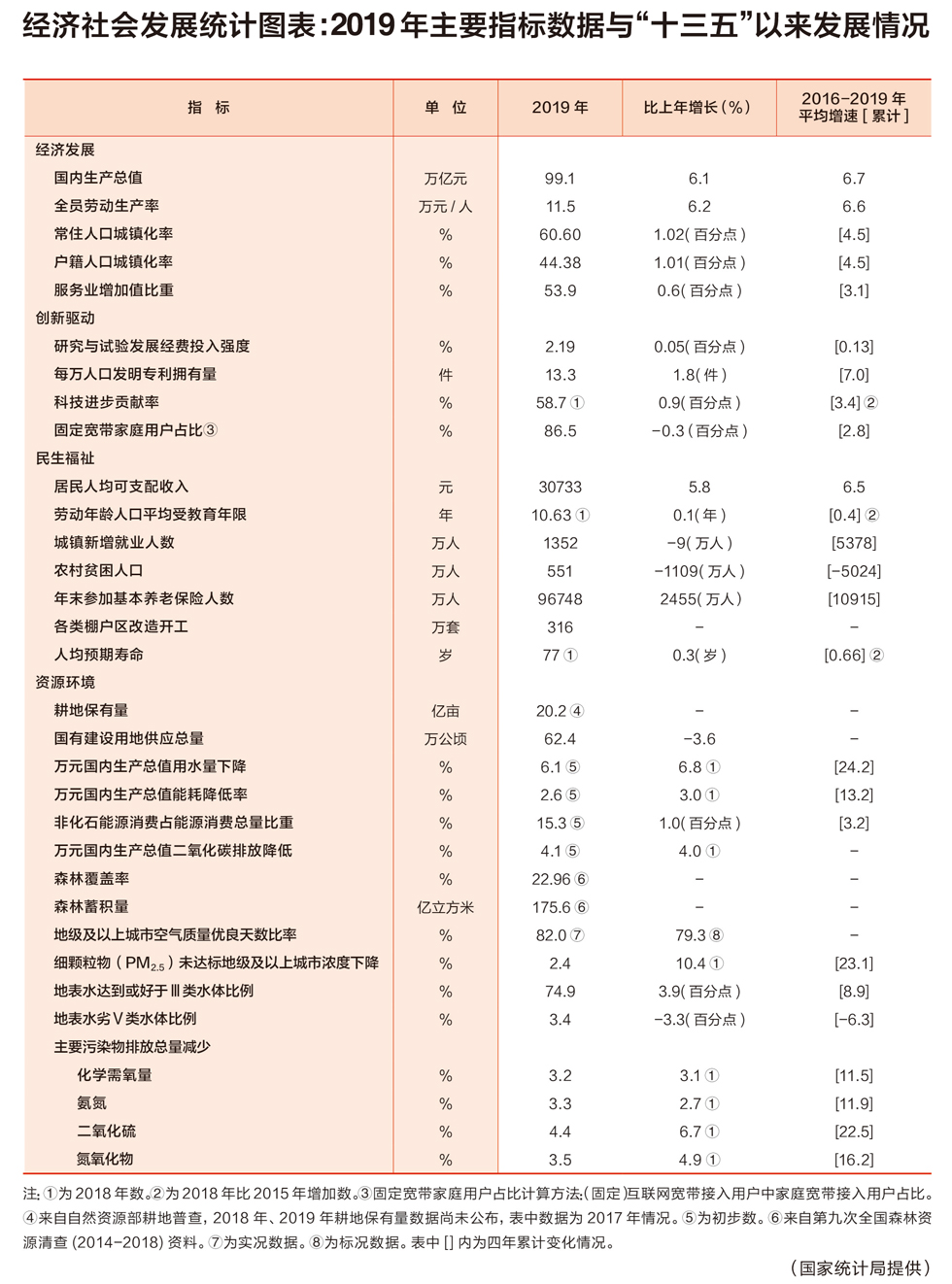 經(jīng)濟社會發(fā)展統(tǒng)計圖表:2019年主要指標數(shù)據(jù)與“十三五”以來發(fā)展情況