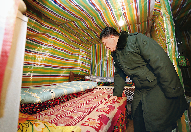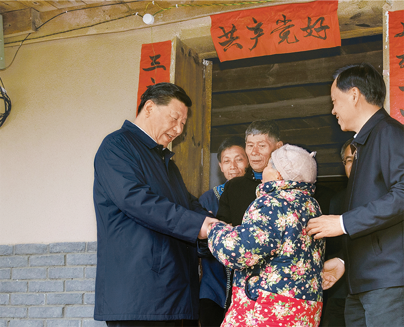 中華民族傳統(tǒng)節(jié)日農(nóng)歷春節(jié)來(lái)臨之際,中共中央總書(shū)記、國(guó)家主席、中央軍委主席習(xí)近平來(lái)到四川考察調(diào)研,看望慰問(wèn)各族干部群眾,向全國(guó)各族人民致以美好的新春祝福。這是2018年2月11日上午,習(xí)近平在涼山彝族自治州昭覺(jué)縣三岔河鄉(xiāng)三河村貧困戶吉好也求家中看望。 新華社記者 鞠鵬/攝