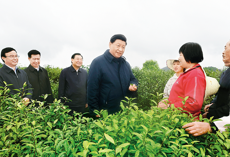 2020年4月20日至23日,中共中央總書(shū)記、國(guó)家主席、中央軍委主席習(xí)近平在陜西考察。這是4月21日,習(xí)近平在安康市平利縣老縣鎮(zhèn)蔣家坪村女?huà)z鳳凰茶業(yè)現(xiàn)代示范園區(qū),同茶農(nóng)們親切交談。 新華社記者 謝環(huán)馳/攝