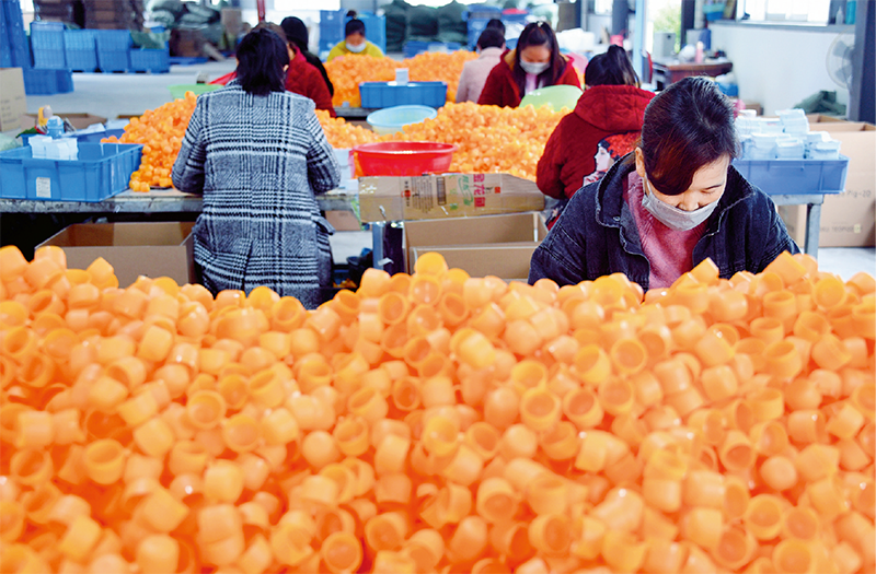 位于湖北省恩施土家族苗族自治州宣恩縣李家河鎮(zhèn)塘坊易地扶貧搬遷安置點(diǎn)的童話工藝“扶貧工廠”,在做好疫情防控的同時(shí)全面復(fù)工復(fù)產(chǎn),帶動(dòng)200多名易地扶貧搬遷群眾和周邊村民就業(yè)。圖為務(wù)工人員將制作好的玩具裝入玩具收納殼。 新華社發(fā) 王俊 /攝