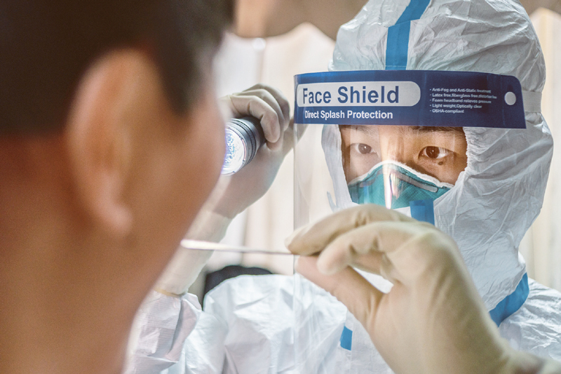 國境衛(wèi)生檢疫是國家公共衛(wèi)生體系的重要一環(huán),事關(guān)國家總體安全,事關(guān)人民群眾生命安全和身體健康,必須筑牢口岸衛(wèi)生檢疫防線,嚴(yán)防境外疫情輸入。圖為2020年2月26日,浙江寧波北侖海關(guān)關(guān)員正在對入境船員進(jìn)行咽拭子采集。 海關(guān)總署供圖
