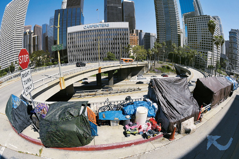 美國勞工部2020年5月21日公布的數(shù)據(jù)顯示,上周美國首次申請失業(yè)救濟人數(shù)為243.8萬,凸顯新冠疫情持續(xù)對美國就業(yè)市場造成嚴重沖擊。 圖為5月21日搭建在美國洛杉磯街邊無家可歸者的營地。 新華社/美聯(lián)