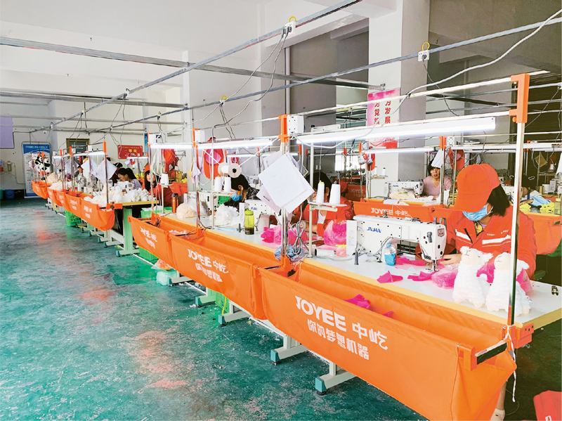 在陜西考察期間,習(xí)近平總書記來到安康市平利縣老縣鎮(zhèn)錦屏社區(qū),實(shí)地察看了社區(qū)電子加工廠、毛絨玩具廠、服飾公司產(chǎn)品展示廳,對當(dāng)?shù)亍吧缴吓d產(chǎn)業(yè),山下建社區(qū),社區(qū)辦工廠”的發(fā)展思路給予肯定。圖為平利縣康士利工藝制品有限公司的工人們正在生產(chǎn)。 陜西省委宣傳部供圖