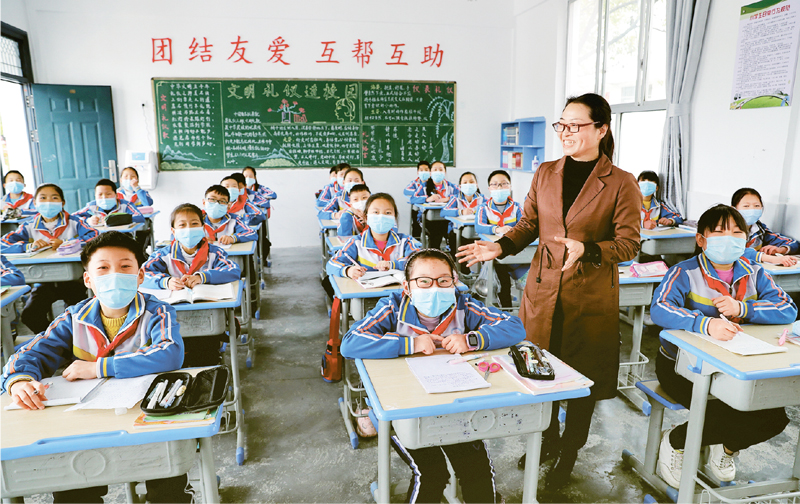 在陜西考察期間,習(xí)近平總書記來到安康市平利縣老縣鎮(zhèn)中心小學(xué),親切詢問孩子們學(xué)習(xí)和生活情況,強(qiáng)調(diào)要推進(jìn)城鄉(xiāng)義務(wù)教育一體化發(fā)展,縮小城鄉(xiāng)教育資源差距,促進(jìn)教育公平,切斷貧困代際傳遞。圖為鎮(zhèn)中心小學(xué)師生正在上課。 陜西省委宣傳部供圖