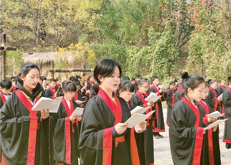 北宋時(shí)期藍(lán)田的《呂氏鄉(xiāng)約》是中國歷史上最早的成文鄉(xiāng)約。藍(lán)田縣賦予鄉(xiāng)約新的時(shí)代精神,訂立了《藍(lán)田新鄉(xiāng)約》,建立了鄉(xiāng)約講習(xí)所,以此滋養(yǎng)人心、敦化風(fēng)俗。圖為中小學(xué)生到鄉(xiāng)約講習(xí)所誦讀《藍(lán)田新鄉(xiāng)約》。 陜西省委宣傳部供圖