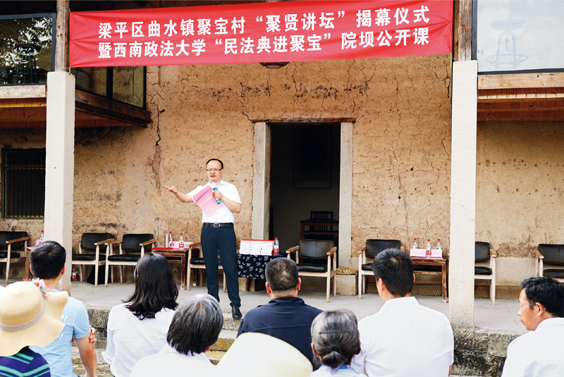 2020年6月10日下午,重慶市梁平區(qū)曲水鎮(zhèn)聚寶村譚家院子,西南政法大學(xué)“民法典百人宣講團(tuán)”成員用通俗易懂的語言和豐富的實(shí)例,向市民講解民法典,引導(dǎo)市民學(xué)法、懂法、守法,讓民法典的精神深入到老百姓的日常生活。 人民圖片 劉輝/攝