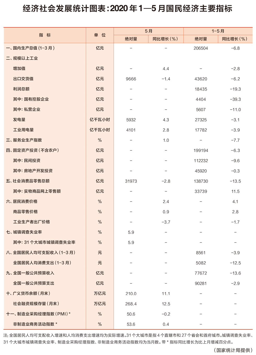經(jīng)濟(jì)社會(huì)發(fā)展統(tǒng)計(jì)圖表:2020年1—5月國民經(jīng)濟(jì)主要指標(biāo)