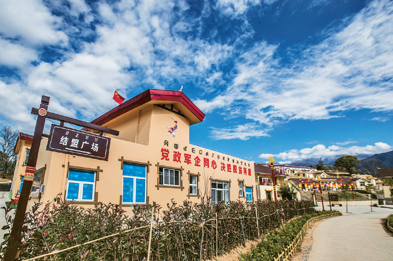 部隊(duì)參與脫貧攻堅(jiān)注重反哺老區(qū),以實(shí)際行動(dòng)幫助群眾改善生活條件。在劉伯承元帥和彝族首領(lǐng)小葉丹當(dāng)年結(jié)盟地,戰(zhàn)略支援部隊(duì)為四川省涼山州冕寧縣彝海村援建結(jié)盟新寨。圖為2017年9月拍攝的結(jié)盟新寨遠(yuǎn)景。 中央軍委政治工作部供圖