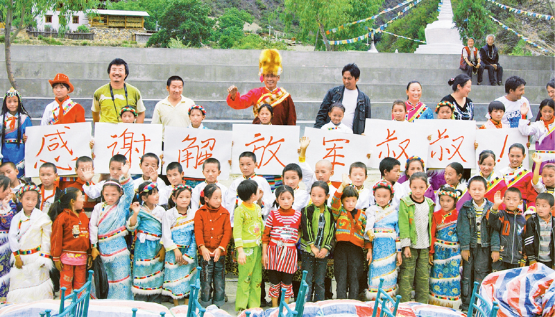 全軍部隊(duì)沿長(zhǎng)征路持續(xù)援建156所“八一愛(ài)民學(xué)校”,在貧困村幫建1544所村小學(xué),積極開(kāi)展捐資助學(xué)等活動(dòng),助力阻斷貧困代際傳遞。圖為云南省德欽縣人武部協(xié)調(diào)安裝燈具改善藏區(qū)學(xué)校照明條件,學(xué)校師生表示感謝。 中央軍委政治工作部供圖