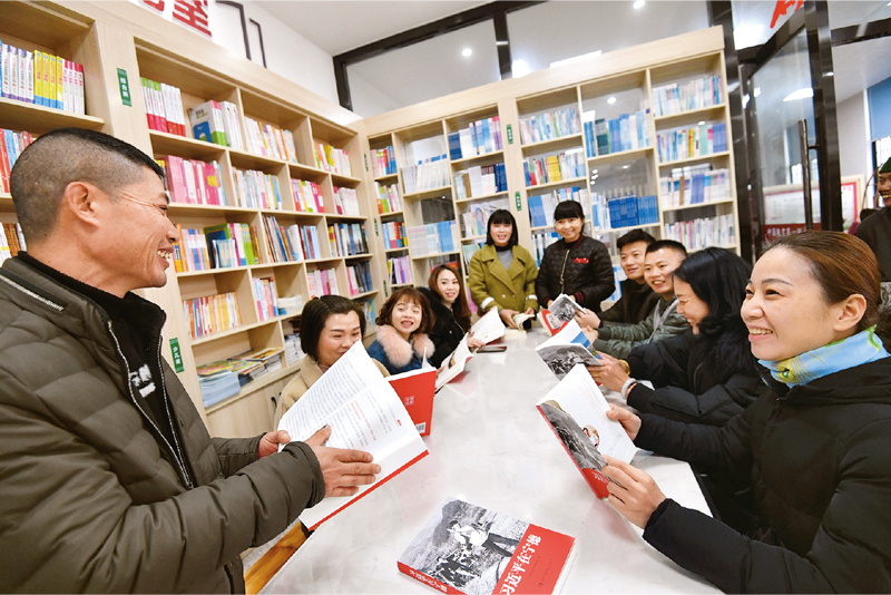 圖為2020年1月22日,在福建省寧德市福鼎市赤溪村圖書閱覽室內,干部群眾正在認真學習討論《習近平在寧德》采訪實錄。 福建省委組織部供圖