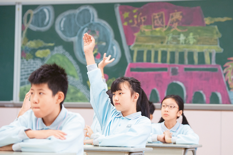 澳門中小學學生使用的教材《品德與公民》中有豐富的關(guān)于國情、國旗、國歌的內(nèi)容,學生們可以從中學到很多關(guān)于祖國的知識,培養(yǎng)對祖國和澳門的感情。圖為2019年11月25日,澳門濠江中學附屬英才學校的學生在課堂上舉手回答老師提問。 新華社記者 張金加/攝