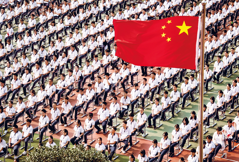 2020年9月1日,湖北省武漢市中小學(xué)、幼兒園全面開(kāi)學(xué)。圖為當(dāng)日武漢中學(xué)舉行的開(kāi)學(xué)典禮。 新華社記者 肖藝九/攝