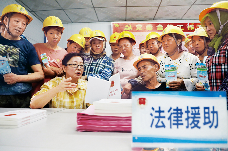 2020年8月26日,河北省唐山市豐潤(rùn)區(qū)司法局組織律師走進(jìn)社區(qū)、工地,為群眾提供免費(fèi)法律援助。 人民圖片 朱大勇/攝