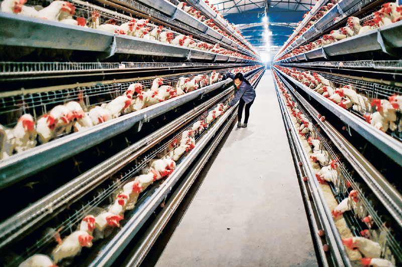 脫貧攻堅(jiān),產(chǎn)業(yè)是基礎(chǔ),產(chǎn)業(yè)興旺,才是解決農(nóng)村一切問題的前提。通過因地制宜發(fā)展特色產(chǎn)業(yè),貴州畢節(jié)市七星關(guān)區(qū)五里坪村農(nóng)民逐漸脫貧走上了小康路。圖為當(dāng)?shù)剞r(nóng)戶在一個(gè)屬于精準(zhǔn)扶貧項(xiàng)目的養(yǎng)雞場內(nèi)工作。 新華社記者 歐東衢/攝