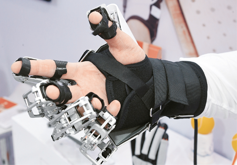 2020年中國國際服務(wù)貿(mào)易交易會9月4日至9日在北京舉行。展會期間,眾多新技術(shù)新成果亮相展示,領(lǐng)域涵蓋人工智能、物聯(lián)網(wǎng)、智慧家居等各類技術(shù)、服務(wù)在生活中的應(yīng)用,讓觀眾體驗(yàn)貼心的服務(wù),感受科技助力美好生活。圖為9月7日,工作人員在服貿(mào)會服務(wù)機(jī)器人專題展區(qū)展示手功能康復(fù)外骨骼機(jī)器手。它可用于幫助因神經(jīng)肌肉骨骼系統(tǒng)受損造成手部運(yùn)動功能障礙的患者進(jìn)行康復(fù)訓(xùn)練。 新華社記者 任超/攝