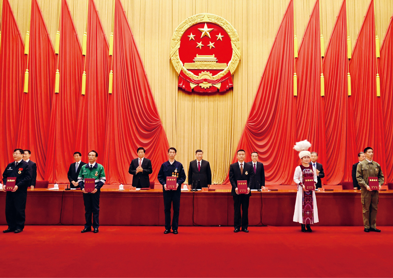 2020年11月24日,全國勞動(dòng)模范和先進(jìn)工作者表彰大會(huì)在北京人民大會(huì)堂隆重舉行。這是習(xí)近平等黨和國家領(lǐng)導(dǎo)人向全國勞動(dòng)模范和先進(jìn)工作者代表頒發(fā)榮譽(yù)證書。 新華社記者 李學(xué)仁/攝