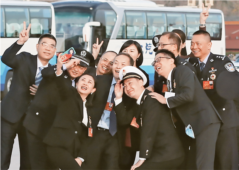 2020年11月24日上午,參加全國勞動(dòng)模范和先進(jìn)工作者表彰大會(huì)的代表們在天安門廣場自拍,留下這一珍貴的幸福榮光。 工人日報(bào)社記者 楊登峰/攝