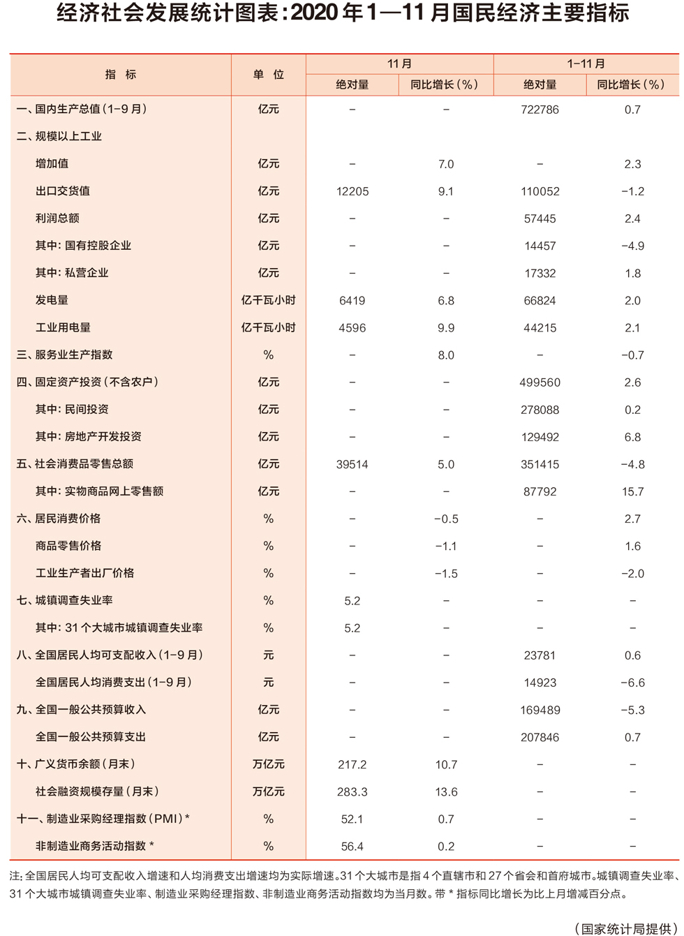 經(jīng)濟(jì)社會(huì)發(fā)展統(tǒng)計(jì)圖表:2020年1—11月國(guó)民經(jīng)濟(jì)主要指標(biāo)