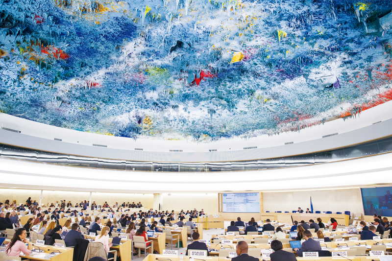 構(gòu)建人類命運(yùn)共同體被寫入聯(lián)合國(guó)社會(huì)發(fā)展委員會(huì)、安理會(huì)、人權(quán)理事會(huì)以及聯(lián)合國(guó)大會(huì)裁軍與國(guó)際安全委員會(huì)等機(jī)構(gòu)的多項(xiàng)決議中,有力推動(dòng)這一理念變成全球性共識(shí)。圖為2017年3月20日,中國(guó)代表在聯(lián)合國(guó)人權(quán)理事會(huì)第三十四次會(huì)議上代表發(fā)展中國(guó)家發(fā)言。3天后,人權(quán)理事會(huì)通過決議,明確表示要“構(gòu)建人類命運(yùn)共同體”。 新華社記者 徐金泉/攝
