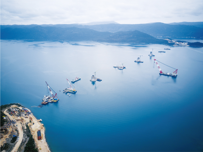克羅地亞佩列沙茨跨海大橋由中國(guó)企業(yè)聯(lián)合體承建,大橋開通后,不僅將大大改善交通難題,對(duì)推動(dòng)當(dāng)?shù)亟?jīng)濟(jì)發(fā)展和民生改善等都將具有十分重要的意義。2018年施工至今,該海域的海豚沒有受到工程打擾,它們?cè)谒刑S嬉戲的視頻不時(shí)出現(xiàn)在社交網(wǎng)絡(luò)上。圖為2020年2月1日佩列沙茨跨海大橋施工現(xiàn)場(chǎng)。 新華社記者 高磊/攝