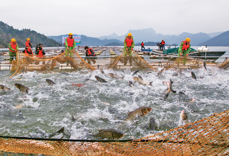 泰寧縣大金湖是福建省大型水庫之一,當(dāng)?shù)乩秘S富的自然資源發(fā)展?jié)O業(yè),大金湖有機魚深受消費者歡迎。圖為大金湖有機魚豐收場景。 三明市融媒體中心記者 周志鴻/攝