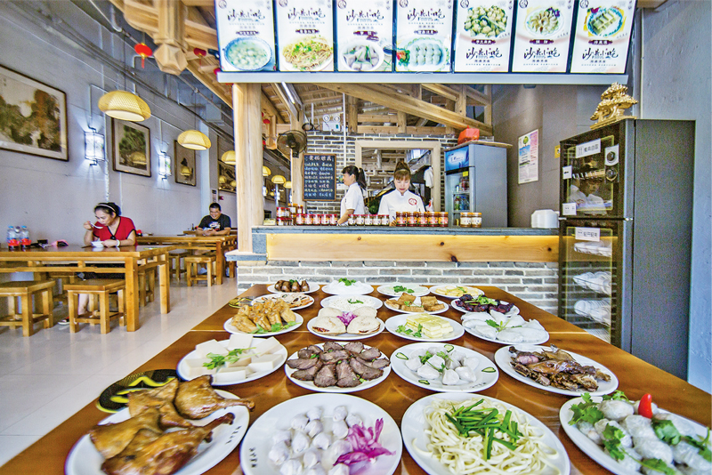 20多年來,三明堅持把沙縣小吃當(dāng)作大產(chǎn)業(yè)來抓,推動沙縣小吃做大做強,走標(biāo)準化、連鎖化、產(chǎn)業(yè)化之路。如今,沙縣小吃不僅成為當(dāng)?shù)氐闹еa(chǎn)業(yè),還遍布全球62個國家和地區(qū)。圖為轉(zhuǎn)型升級后的沙縣小吃連鎖加盟店,環(huán)境整潔,品種豐富。 曾勇/攝
