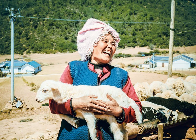 發(fā)展產(chǎn)業(yè)是實(shí)現(xiàn)脫貧的根本之策。通過產(chǎn)業(yè)扶持,中國(guó)華能四川公司對(duì)口幫扶的涼山州昭覺縣團(tuán)結(jié)村脫掉了貧困村的帽子。圖為2020年3月30日,該村一貧困戶在“借羊還羊”項(xiàng)目獲得豐收后喜笑顏開。 中國(guó)華能四川公司供圖 何松/攝
